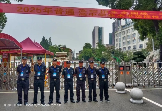 2025 年备受瞩目的中考期间,湖北旭安保安服务有限公司肩负重任,为仙桃一中、田家炳实验高级中学、弘文中学、汉江中学四所学校的中考保驾护航。面对恶劣天气的严峻考验,公司凭借专…